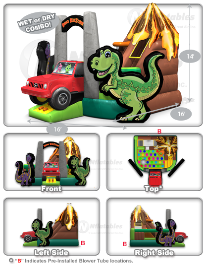 This adorable addition to our lineup of KidZones™ features the same great layout as our popular Midway, Candy, Princess, and Wacky KidZones™ and can be used both with or without water. All KidZones™ have spacious bouncing areas with an Entanglement™ game mat sewn on, along with climbing and sliding lanes. For added safety, this unit features an X-TRA Grip™ climb cover that reduces slips and helps to keep kids safe. There are also special built-in drain holes that make draining this unit a breeze! This KidZone has walls that are 56" high. The interior bouncing area is 10'x7'.
